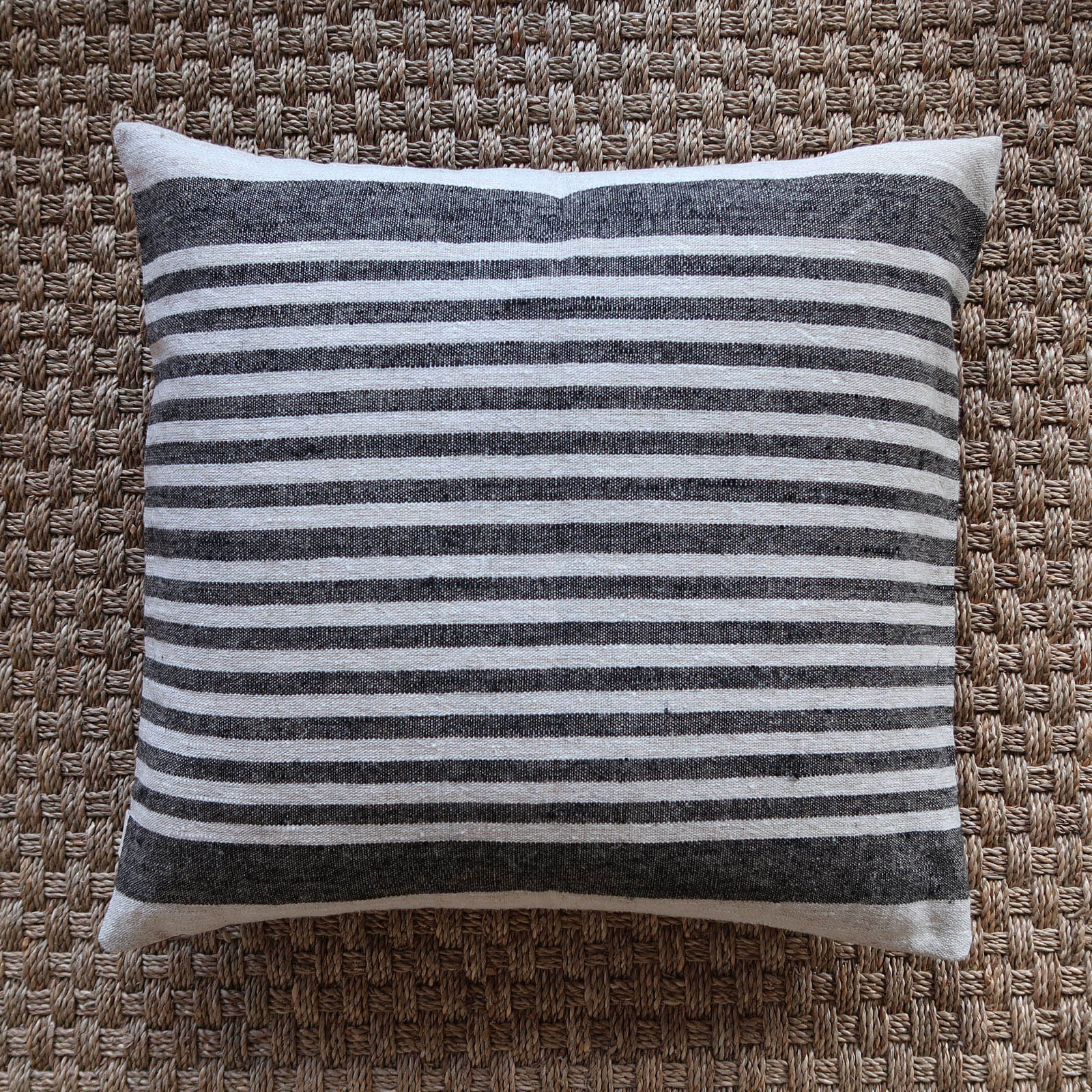 Our signature cushions are made with organic striped linen in two designs and recycled wool. Filled with an ethically sourced feather and down pad.