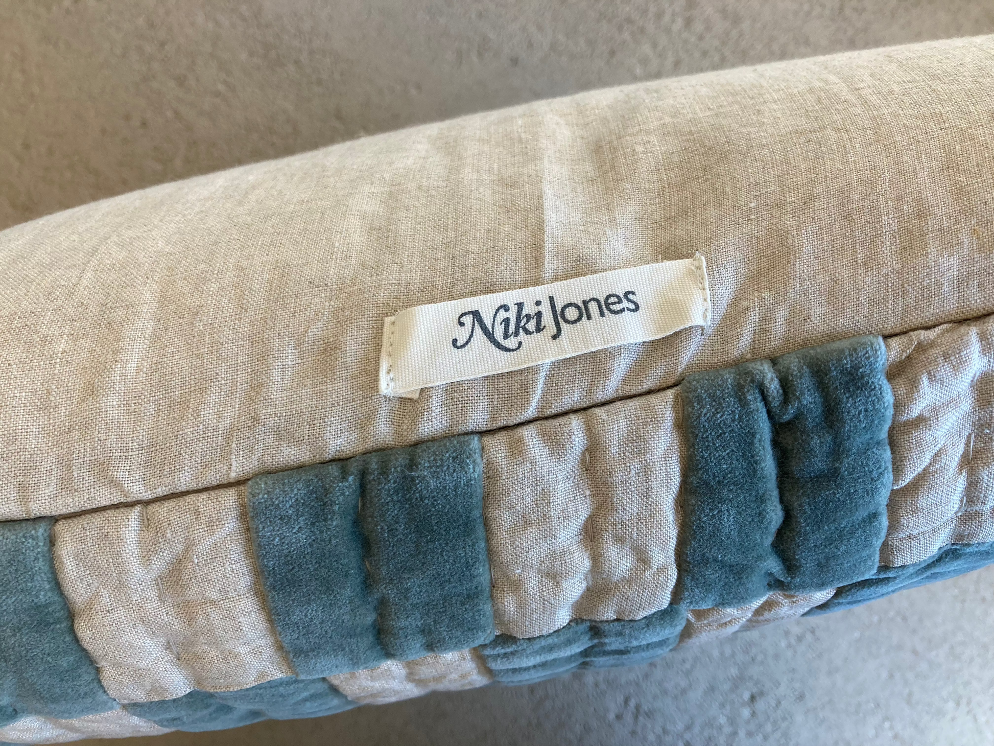This limited edition 'Patchwork' collection explores the intricate handmade process of this craft, enhanced by the contrast of our cotton velvet and natural linen. Modern day heirlooms to be passed down for generations. Hand stitched quilting on a soft cotton velvet and natural linen patchwork front and natural linen reverse. Filled with 100% cotton, giving the piece a quilted front.