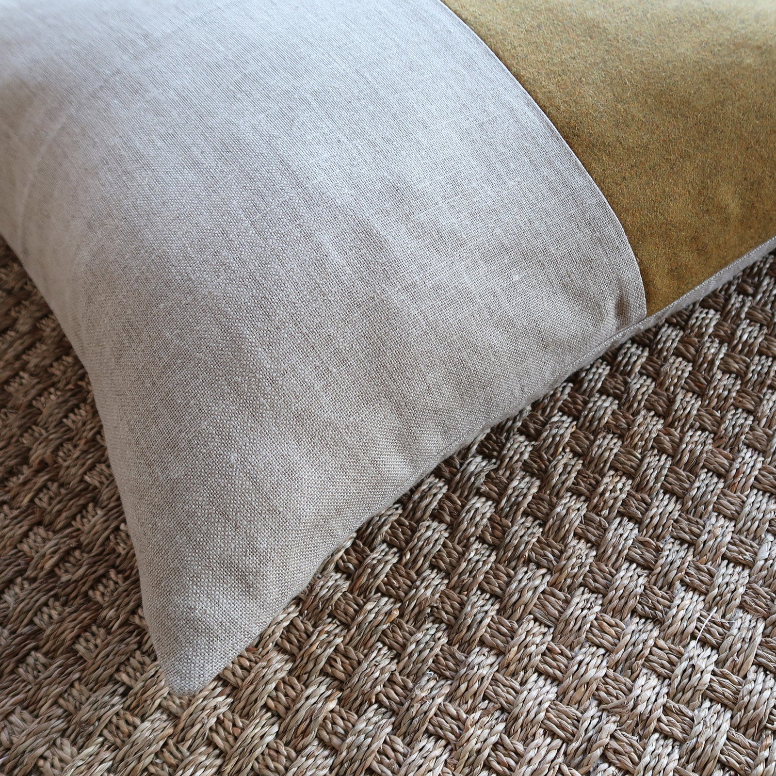 Our signature panelled cushions are made with ethically sourced linen and recycled wool. Filled with an ethically sourced feather and down pad.