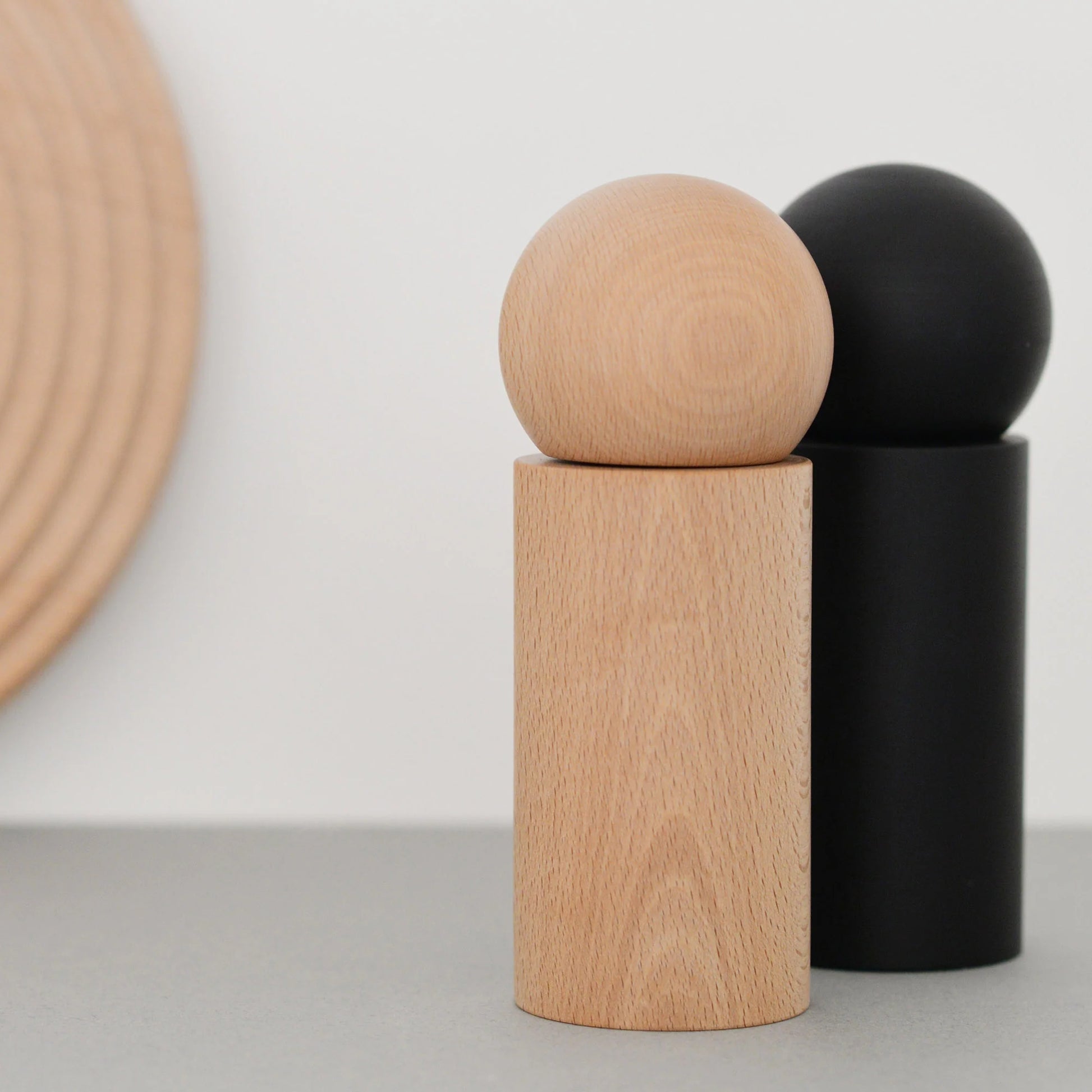 The grinder is crafted from solid beech and available in a natural or black finish, with an organic shape that allows for easy grip and feels smooth to the touch