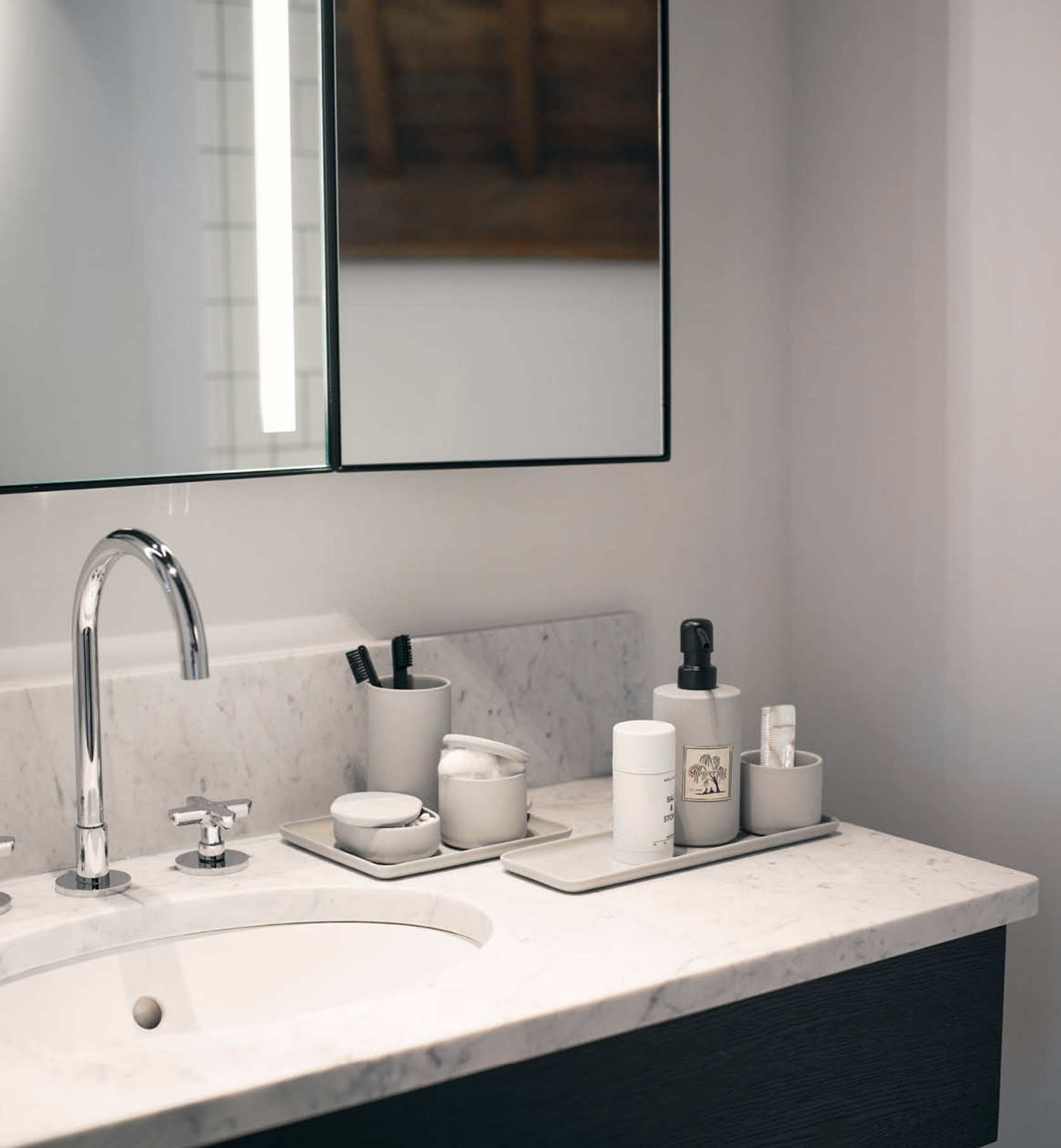 - An adaptable off-white porcelain tray which is equally at home in the bathroom, kitchen or even to serve and aperitif.