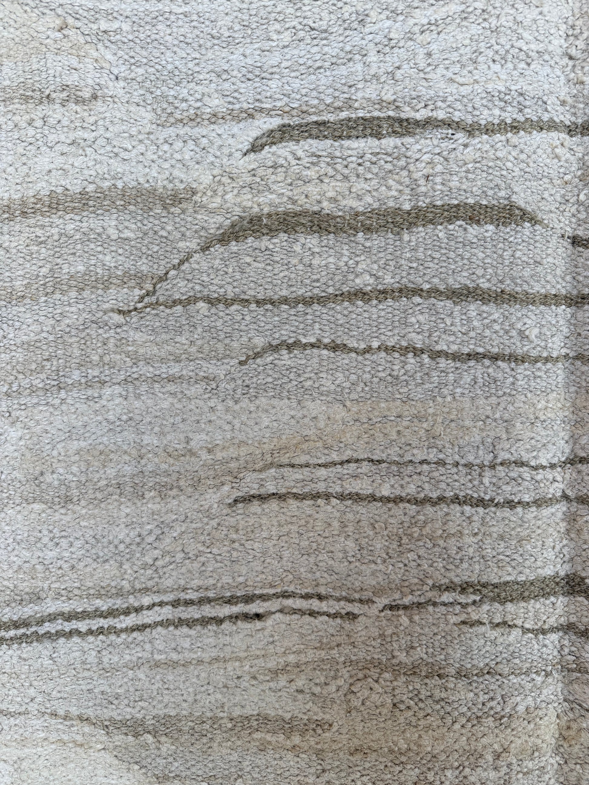 Striped vintage Turkish kilim rug handwoven in the 1960's. This beautiful rug in neutral with abstract ethnic symbols has been coloured using natural plant dyes.